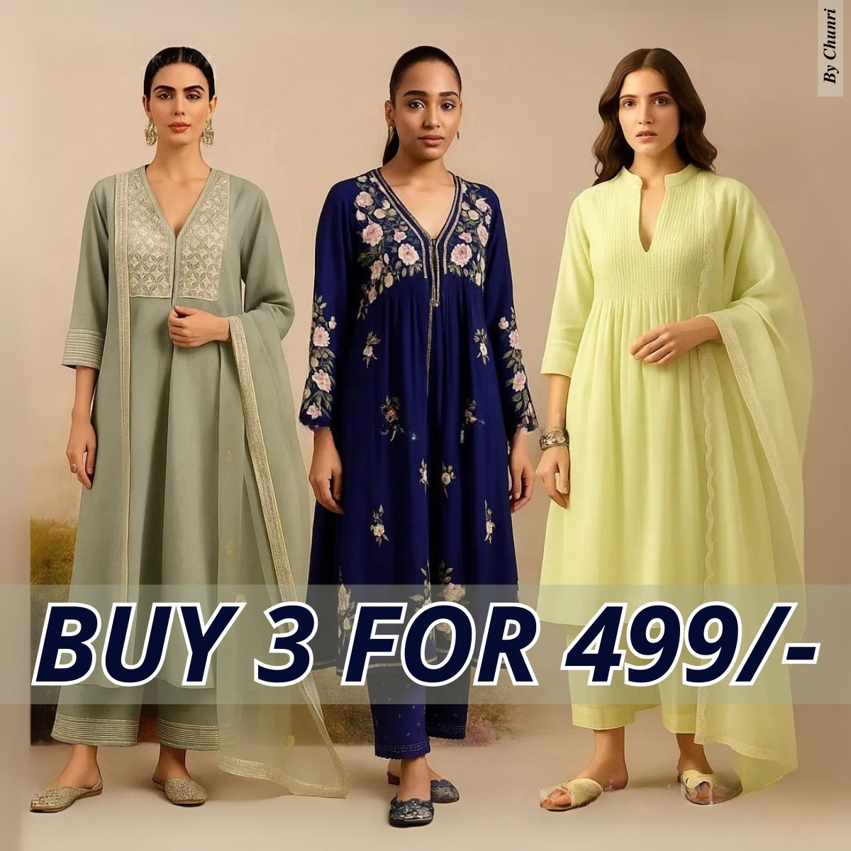 Celebrate Tradition with Our 3 Combo Festive Kurta Sets + Dupatta | FK-04