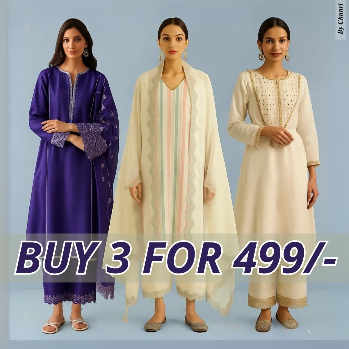 Celebrate Tradition with Our 3 Combo Festive Kurta Sets + Dupatta | FK-07