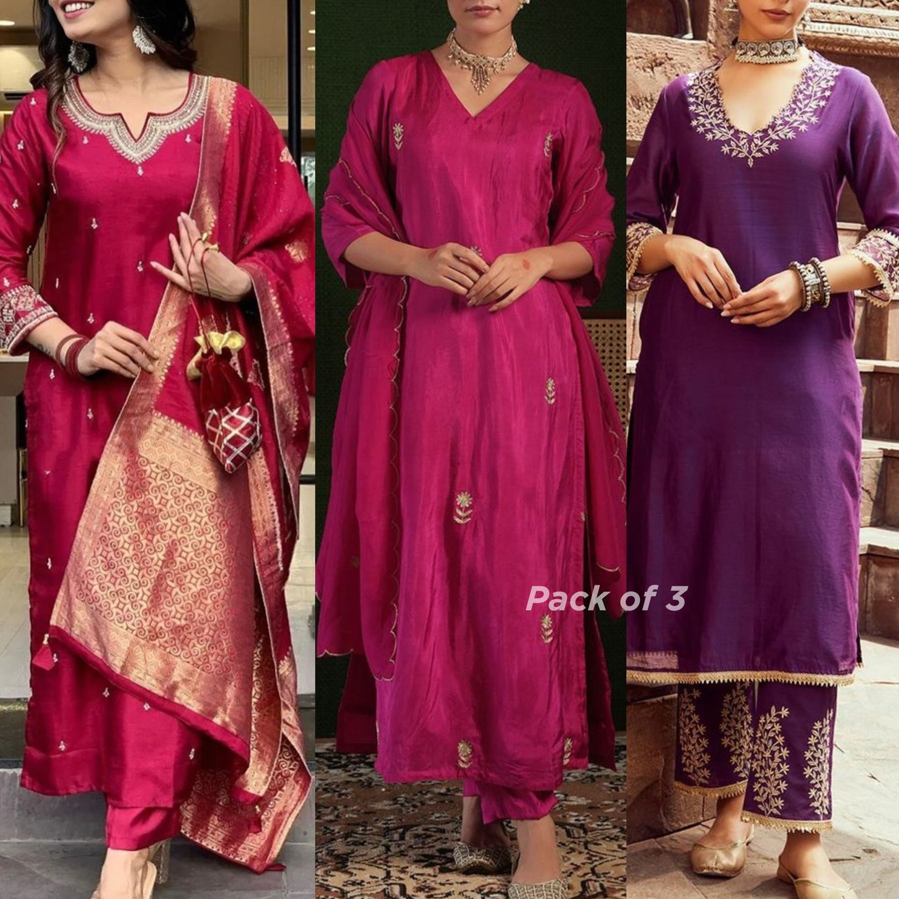 Elegant 3-Piece Women Kurti Set with Dupatta Combo Pack – Stylish, Comfortable & Versatile Ethnic Wear | KS-05