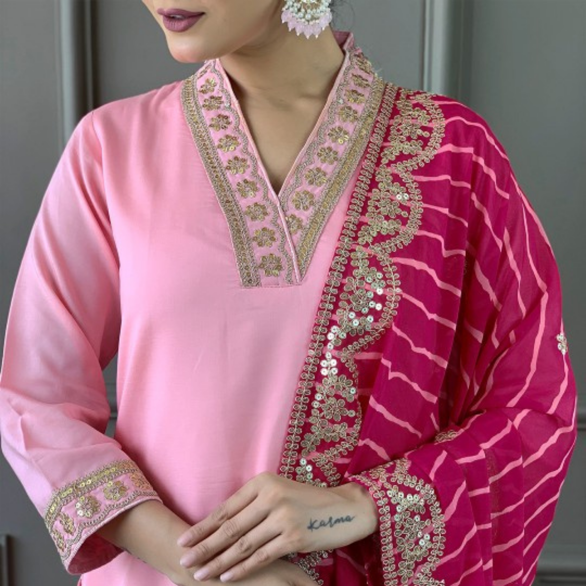 Elevate your ethnic wardrobe with this beautiful Women’s Suit Set with Dupatta, perfect for every festive occasion, cultural event, or casual outing. This elegant three-piece ensemble includes a stylish kurta, comfortable bottom, and a matching dupatta that adds grace and charm to your overall look.