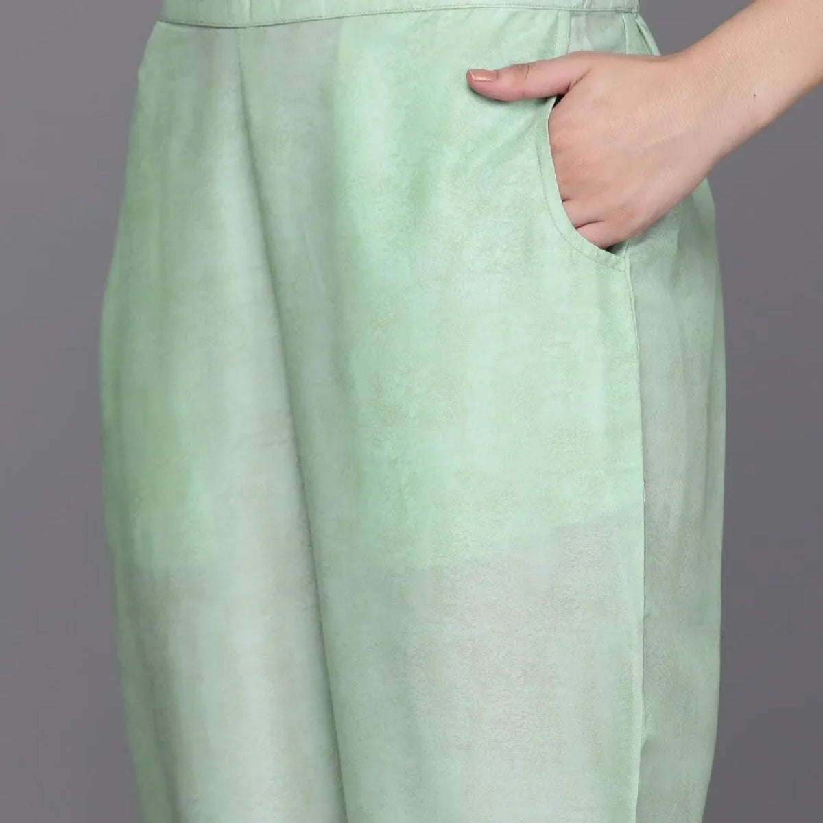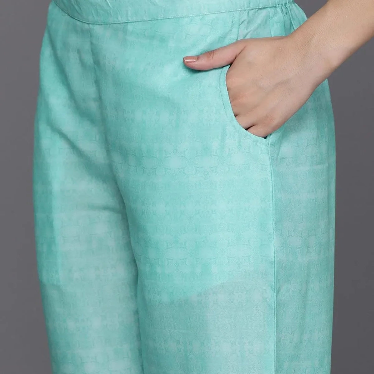 Paired with blend pants, designed with a fully elasticated waistband, this set offers a flawless combination of tailored ease and feminine charm. Whether worn for intimate gatherings or grand occasions, this ensemble is a poetic reflection of effortless beauty.